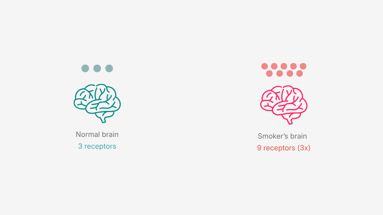 Every cigarette rewires your brain a little more. After years of smoking, your nicotine receptors have multiplied two to three times over. Your dopamine system has gone numb. Your stress response is on a hair trigger.